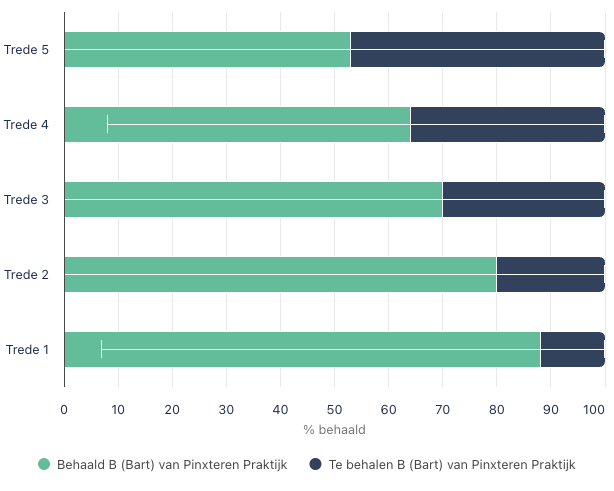 Het hele cijfer representeert de trede, het getal achter de komma geeft aan wat de potentie van uw praktijk is. Tussen haakjes de laagste en hoogste score binnen de RHO.